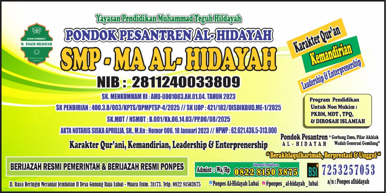 Langsung ke isi- Pondok Pesantren Al-Hidayah : Izin oprasional dari Kementrian Agama Republik Indonesia
